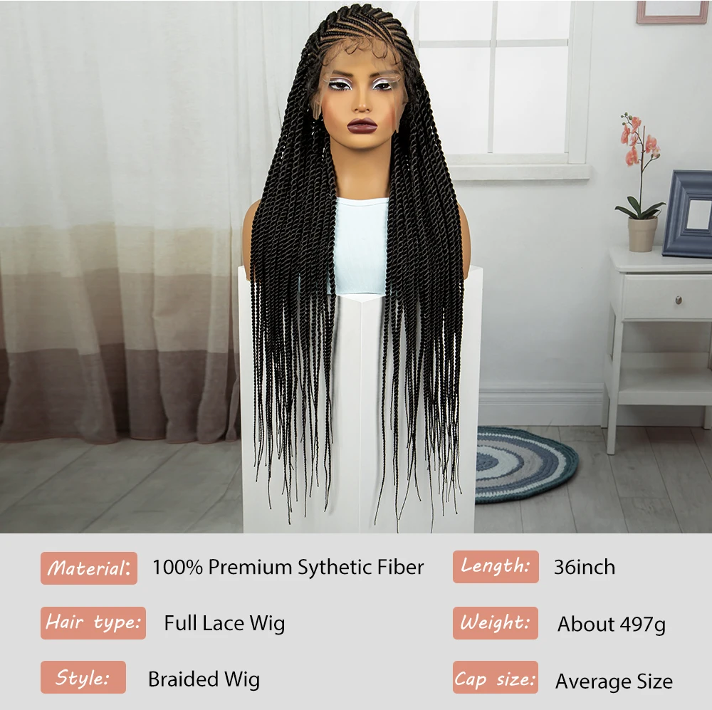 36 Inch Synthetic Cornrow Braids Wigs Transparent Full Lace Braided Wigs Natural Lace Front Wigs for Black Women with Baby Hair