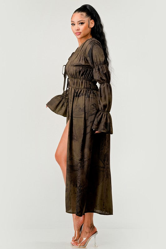 Stay warm and stylish in the Athina All Tied Up Cardigan. This versatile olive cardigan features shirring detail and a front tie closure for a chic, elegant casual look. Perfect for the fall season.