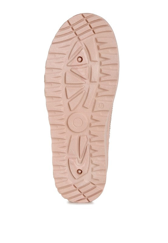 Introducing our platform classic slip-ons-where warmth meets rhinestone sparkle. Featuring stylish panelling, comfortable 2-inch flatform heels, and soft cushioned insoles, these sliders feel like walking on clouds with a hint of shine. They're perfect for lounging at home, running errands, or when out and about on a lazy day.