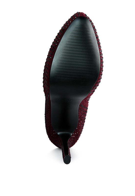 Nebula Rhinestone Embellished Stiletto Calf Boots