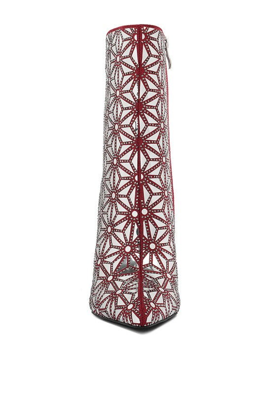 Step into this maximalist era of vogue wearing these patterned mirror embellished boots that are absolutely beautiful and sure to turn some heads their way! A showstopper piece, the boots are all about partying all night and having the best time! The lightly cushioned insoles cut strain and give you a comfortable fit.
