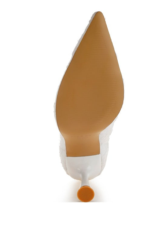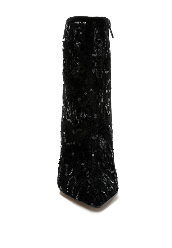 The lace boots have an underlying allure with the sheer lace upper and sequins detail. The elegant lace with the spool heels exhibits a rather elegant aesthetic which is chic and would make beautiful wedding shoes. The plush cushion insoles also cut strain making them a comfortable as well as a stylish pair.